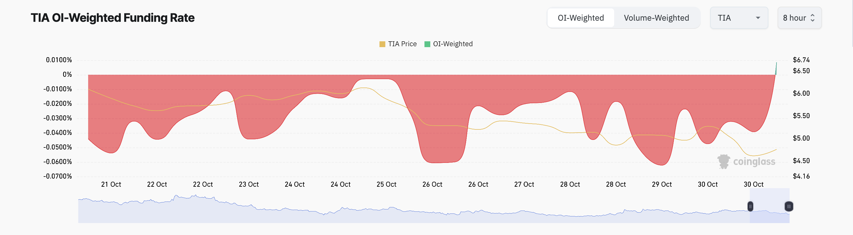 TIA की कीमत पिछले 24 घंटों में गिरी है, बुधवार को Celestia के 176 मिलियन टोकन अनलॉक होने के बाद।