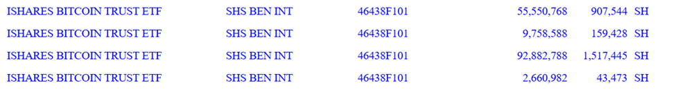 इसके Grayscale Bitcoin Mini Trust (BTC) होल्डिंग्स में मामूली वृद्धि हुई, लगभग $23,000 से $31,500 तक। वहीं, इसके Grayscale Bitcoin Trust (GBTC) की स्थिति $146,000 से बढ़कर $192,000 से अधिक हो गई।
