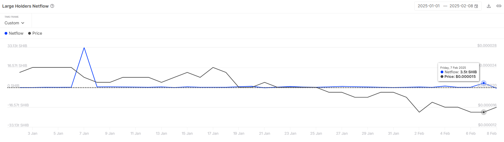 यह खरीदारी गतिविधि सुझाव देती है कि व्हेल एक प्राइस रिबाउंड की उम्मीद कर रहे हैं और उसी के अनुसार अपनी स्थिति बना रहे हैं। उनके संचय ने SHIB को और गिरने से रोकने में मदद की है। यदि यह प्रवृत्ति जारी रहती है, तो व्हेल-चालित मांग शॉर्ट-टर्म समर्थन प्रदान कर सकती है, संभावित रूप से आने वाले दिनों में मीम कॉइन की कीमत को स्थिर कर सकती है।