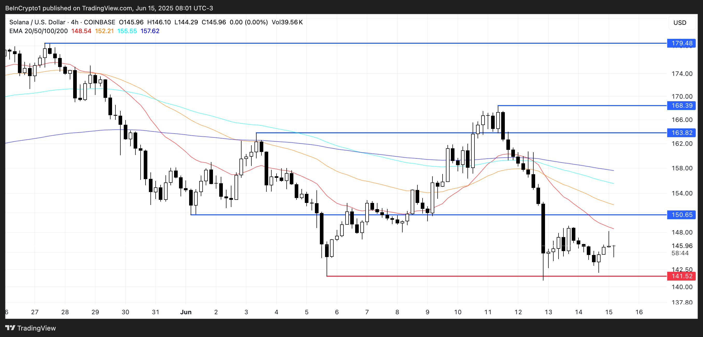 SOL की $150 रेजिस्टेंस पर संघर्ष, तेज गिरावट के बाद