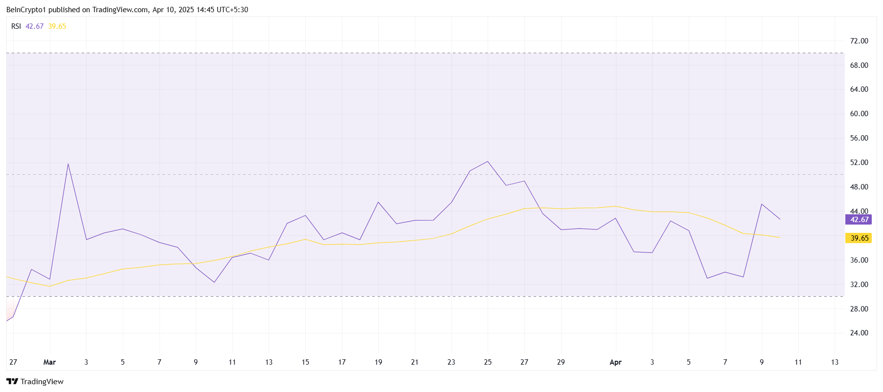 हालांकि, वेलोसिटी से मिले अनुकूल संकेतों के बावजूद, Solana का मैक्रो मोमेंटम अपेक्षाकृत कमजोर बना हुआ है। रिलेटिव स्ट्रेंथ इंडेक्स (RSI) अभी भी बियरिश जोन में फंसा हुआ है, जो न्यूट्रल 50.0 मार्क के नीचे है।