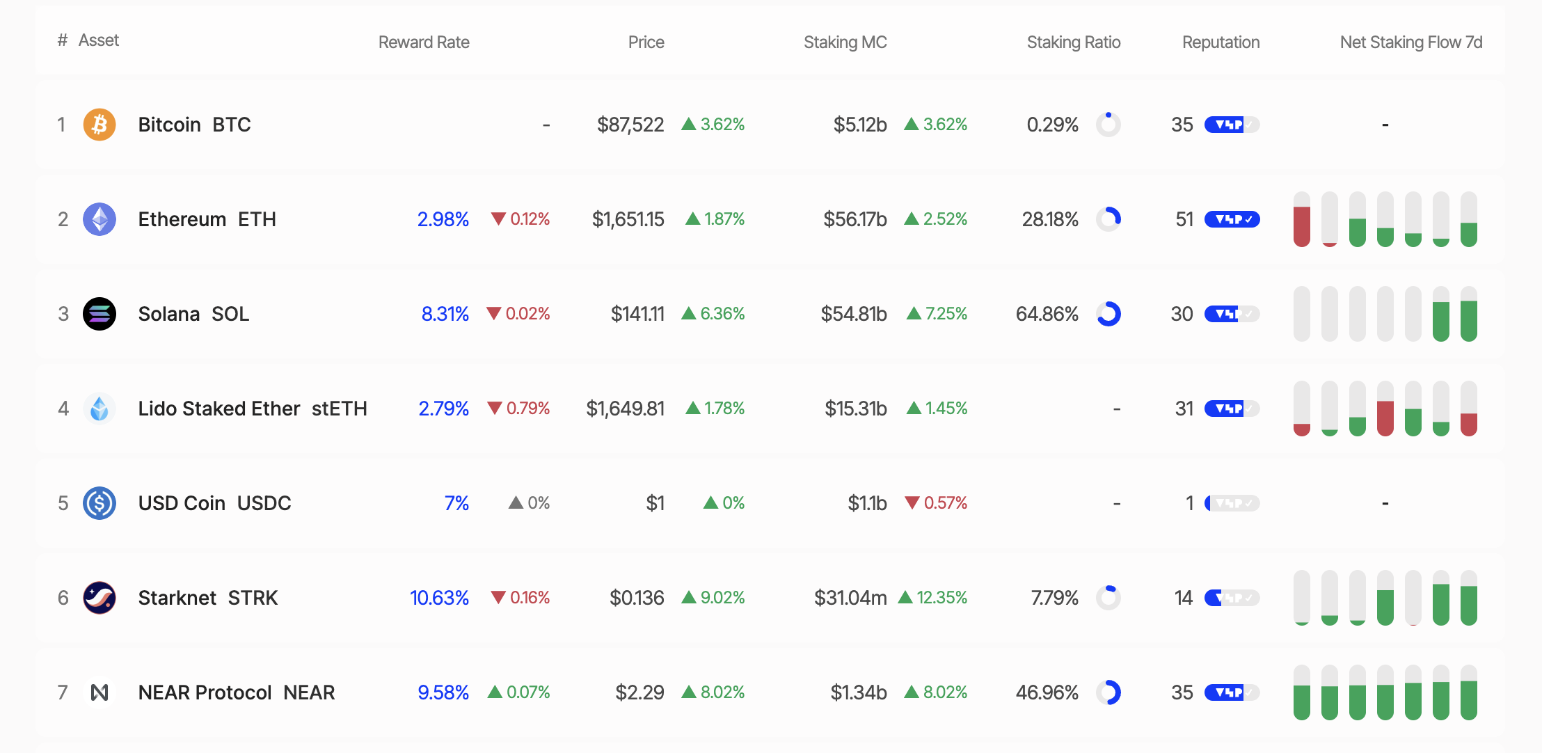 हाल के डेटा से पता चलता है कि Solana की कुल सप्लाई का 64.86% वर्तमान में स्टेक किया गया है, जो 8.31% की प्रभावशाली वार्षिक प्रतिशत उपज (APY) प्रदान करता है। इसके विपरीत, Ethereum की केवल 28.18% सप्लाई स्टेक की गई है, जिसका APY 2.98% है।