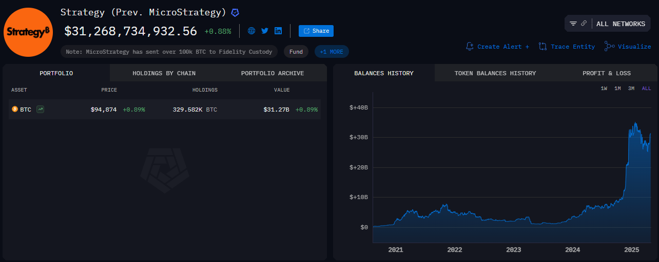 फर्म के पास वर्तमान में 553,555 BTC हैं, जिनकी कीमत लगभग $52.7 बिलियन है। औसत खरीद मूल्य $68,459 है, और अवास्तविक लाभ $14.8 बिलियन है।