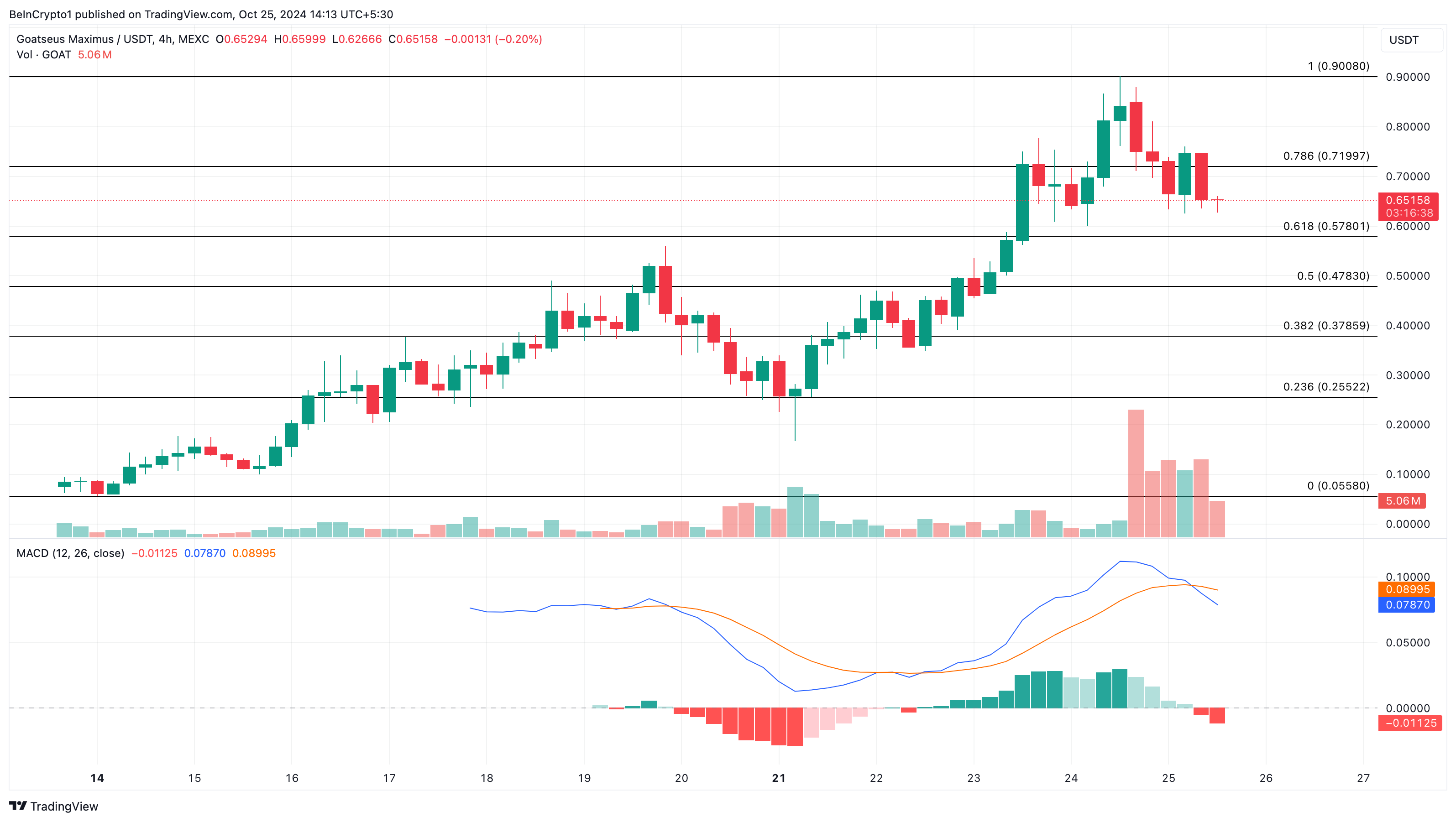इसके विपरीत, जब संकेतक शून्य रेखा के नीचे होता है, तो यह नेट वितरण का संकेत देता है, जिसका अर्थ है बढ़ता हुआ बिक्री दबाव और संपत्ति के लिए एक संभावित बेयरिश दृष्टिकोण। वर्तमान स्थिति के साथ, Toncoin की कीमत में $4.46 तक की गिरावट आ सकती है।