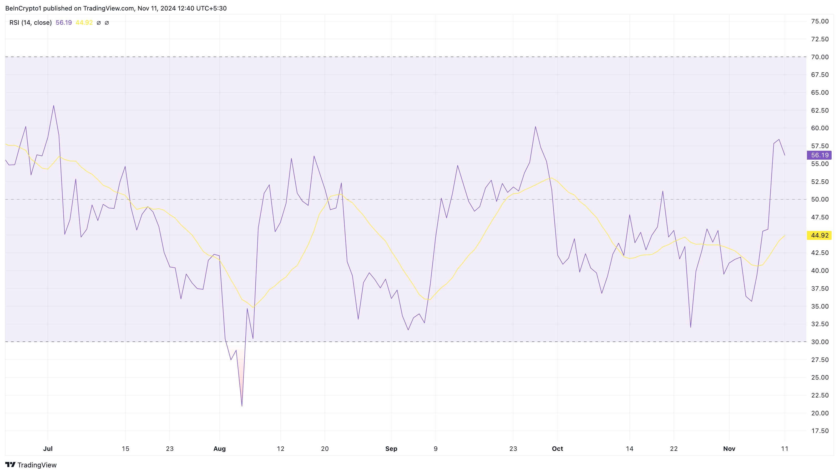 Money Flow Index (MFI) एक और संकेतक है जो ऐसे कदम का समर्थन करता है। यह संकेतक वॉल्यूम और डेटा का उपयोग करके खरीदने और बेचने के दबाव को मापता है। दैनिक चार्ट पर देखा गया है कि MFI रीडिंग बढ़ी है, जिसका मतलब है कि Toncoin की वसूली खरीद दबाव के समर्थन से जारी रह सकती है।