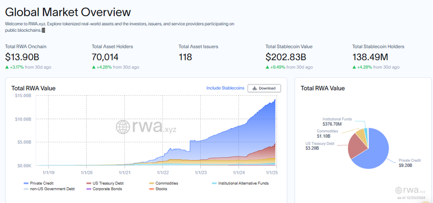 RWA.xyz के अनुसार, टोकनाइज्ड ट्रेजरीज़ पहले ही $13 बिलियन से अधिक हो चुकी हैं, जो वर्ष की शुरुआत में $700 मिलियन से अधिक थी।