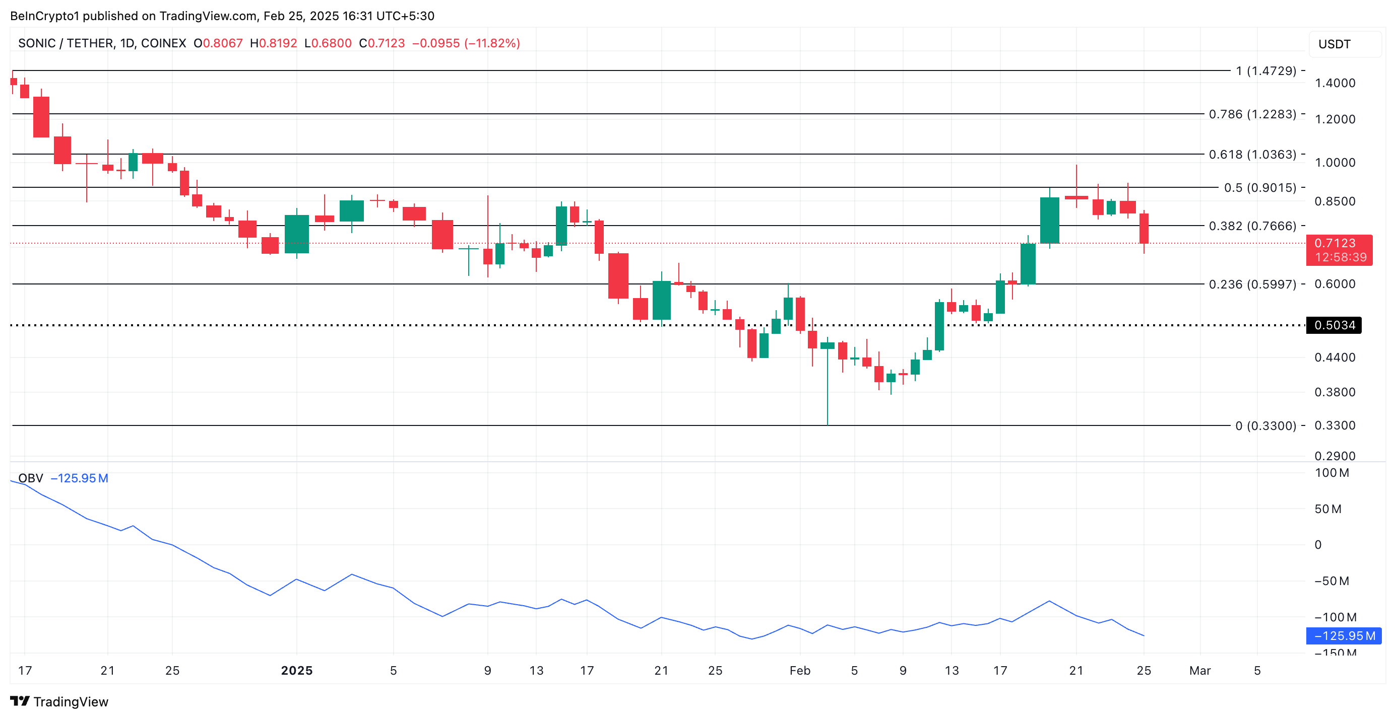 Sonic का S आज एक और ट्रेंडिंग altcoin है। इसकी कीमत 17% नीचे है, जो पिछले 24 घंटों की सामान्य बाजार गिरावट को दर्शाती है।