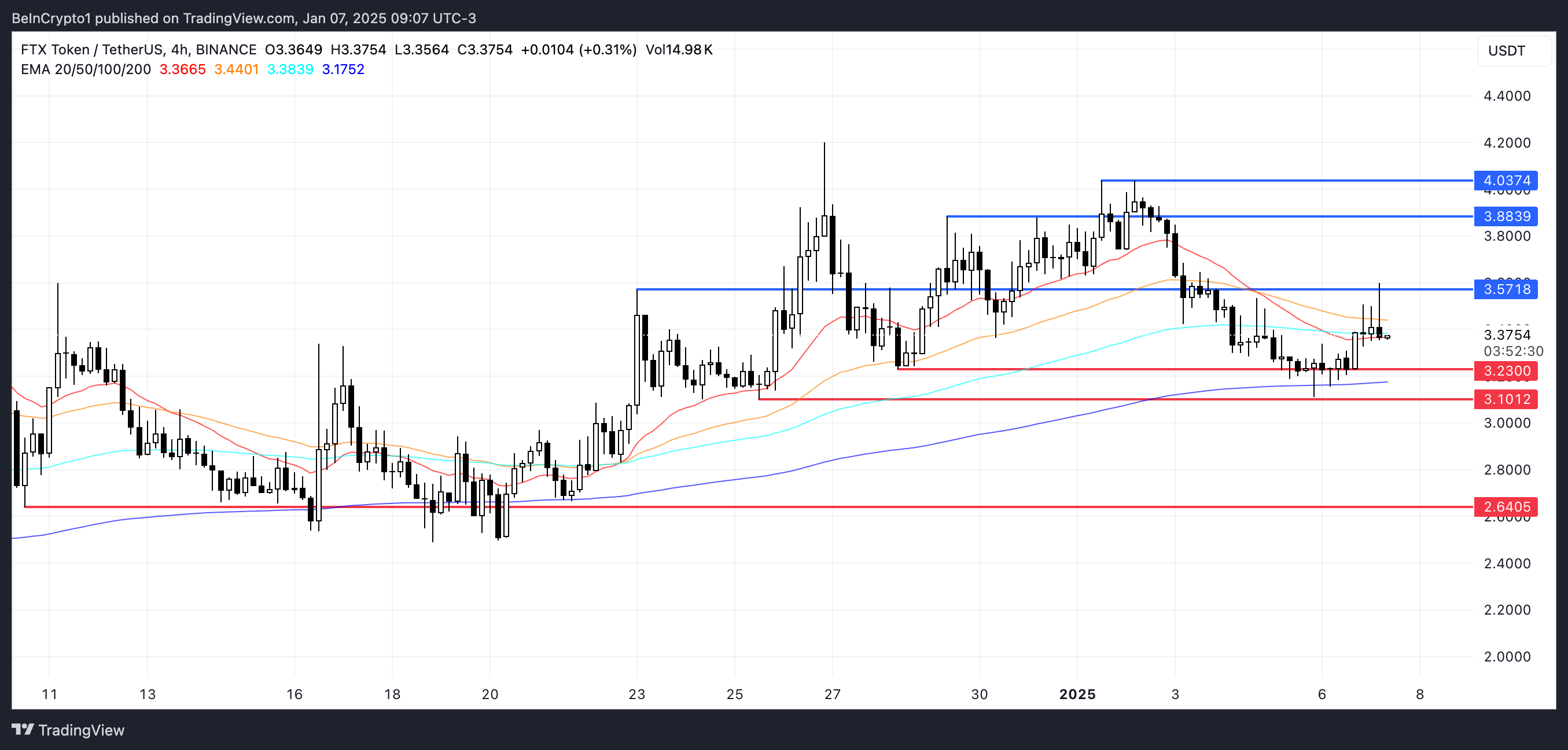 FTT प्राइस चार्ट एक गोल्डन क्रॉस बनाने का प्रयास दिखा रहा है, जो एक बुलिश संकेत है जो अपवर्ड मोमेंटम को फिर से प्रज्वलित कर सकता है। यदि सफल होता है, तो FTT $3.57 पर रेजिस्टेंस का परीक्षण कर सकता है, और इस स्तर को तोड़ने से $3.88 या यहां तक कि $4.03 की ओर और गेन हो सकते हैं।
