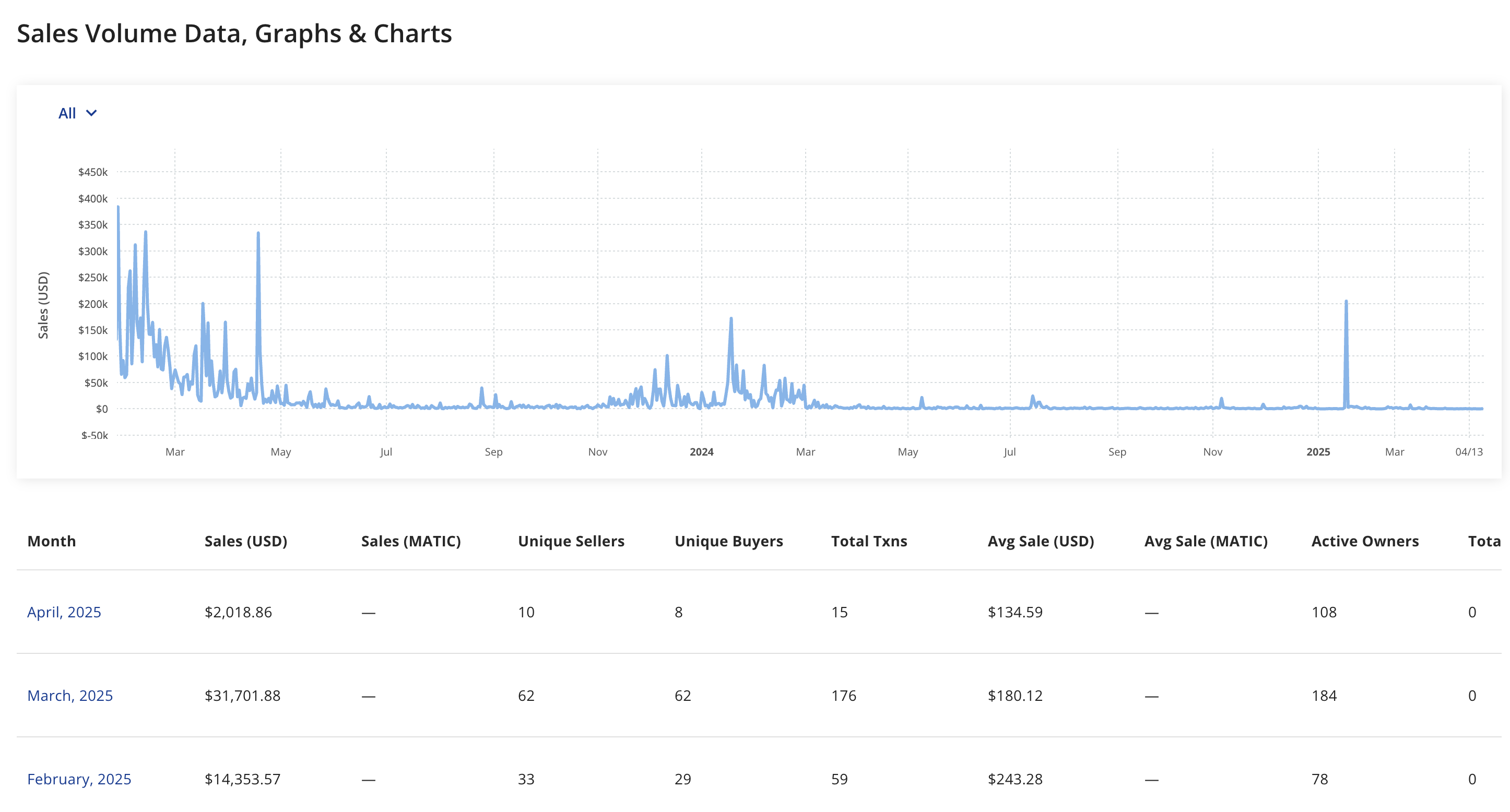अप्रैल 2025 तक, CryptoSlam डेटा दिखाता है कि Trump Digital Trading Cards के लिए ट्रेडिंग वॉल्यूम केवल $2,000 तक गिर गया, जो कि इसके शिखर के विपरीत है।