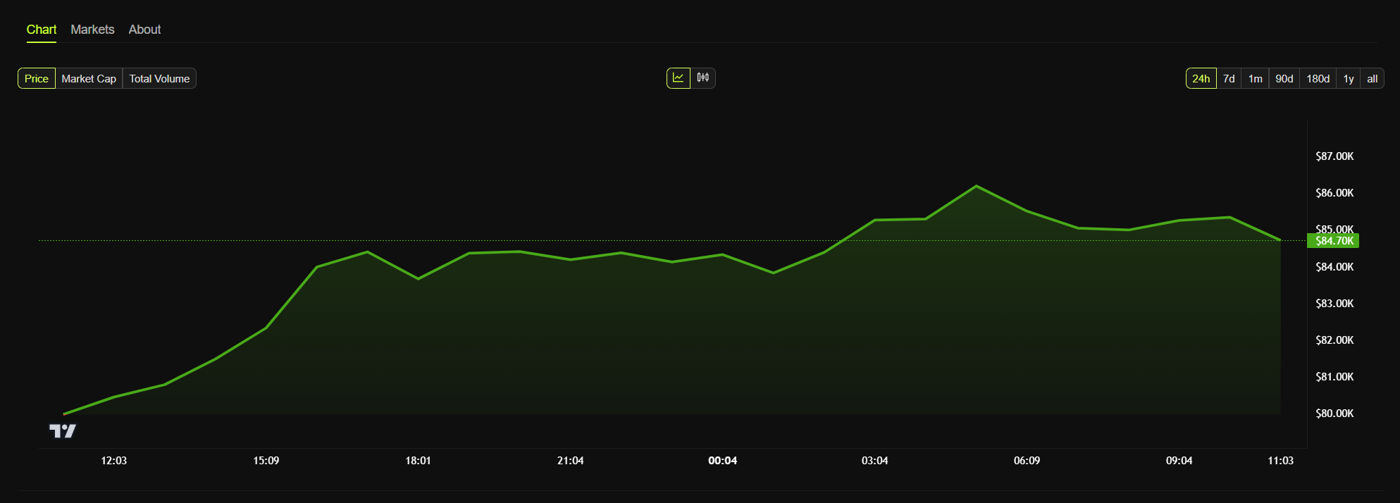 सबसे उल्लेखनीय बात यह है कि Bitcoin $78,000 तक गिरने के बाद सप्ताह भर की गिरावट के बाद $85,000 पर वापस चढ़ गया है।