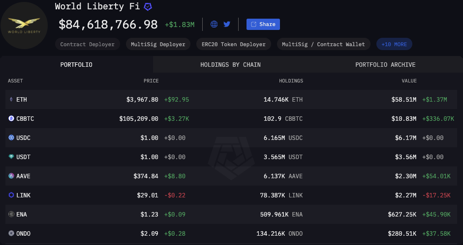 वर्ल्ड लिबर्टी फाइनेंशियल की हाल की गतिविधियाँ संभावित DeFi प्रोजेक्ट्स में निवेश करने की एक सुनियोजित रणनीति को उजागर करती हैं। ONDO, जो वास्तविक दुनिया की संपत्ति टोकनाइजेशन से जुड़ा एक टोकन है, उच्च-प्रोफ़ाइल खरीद के जवाब में बढ़ गया।