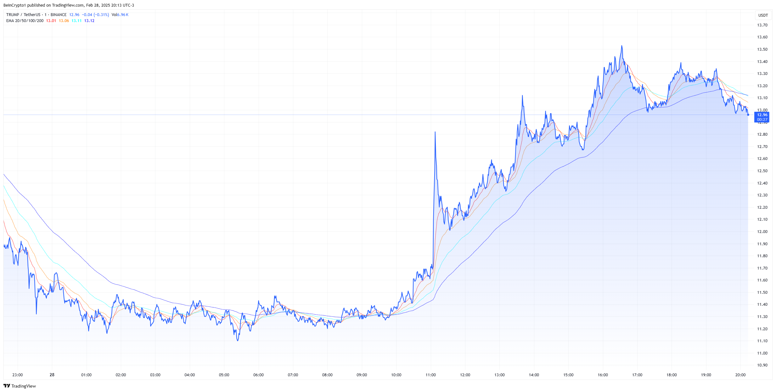 डोनाल्ड ट्रंप के यूक्रेन के राष्ट्रपति ज़ेलेंस्की के साथ ओवल ऑफिस में वायरल टेलीविज़न बहस में शामिल होने के बाद, मीम कॉइन्स TRUMP और MAGA की वैल्यू में उछाल आया। MAGA ट्रंप पर आधारित शुरुआती मीम कॉइन्स में से एक था, और यह एक महीने से अधिक समय में इसकी पहली अपवर्ड मूवमेंट है।