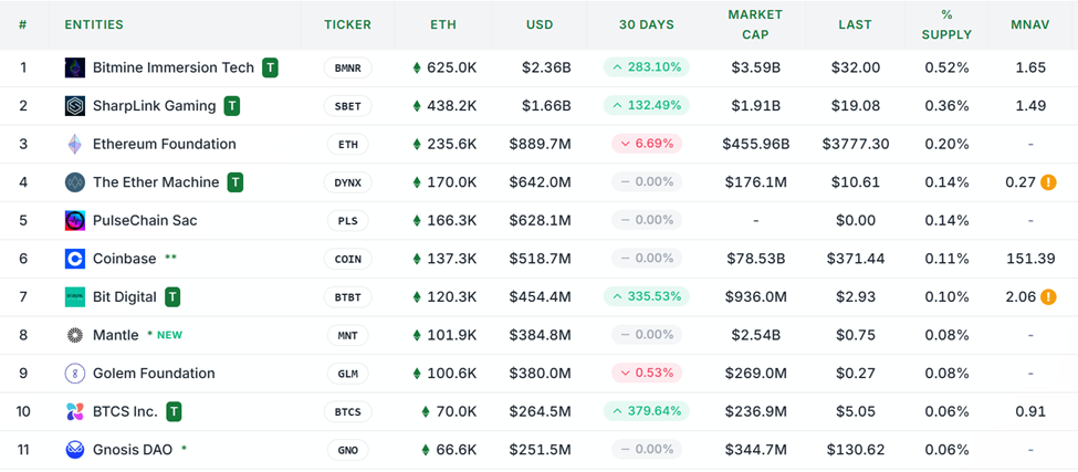 जैसे-जैसे दुनिया अगले दशक की शुरुआत में प्रवेश कर रही है, कॉर्पोरेट ट्रेजरी बढ़ रही हैं। Standard Chartered की भविष्यवाणी है कि ये वित्तीय संसाधन प्रबंधक Ethereum की सप्लाई का 10% होल्ड करेंगे। विशेष रूप से, 30 जुलाई तक, वे केवल 1% होल्ड करते हैं।
