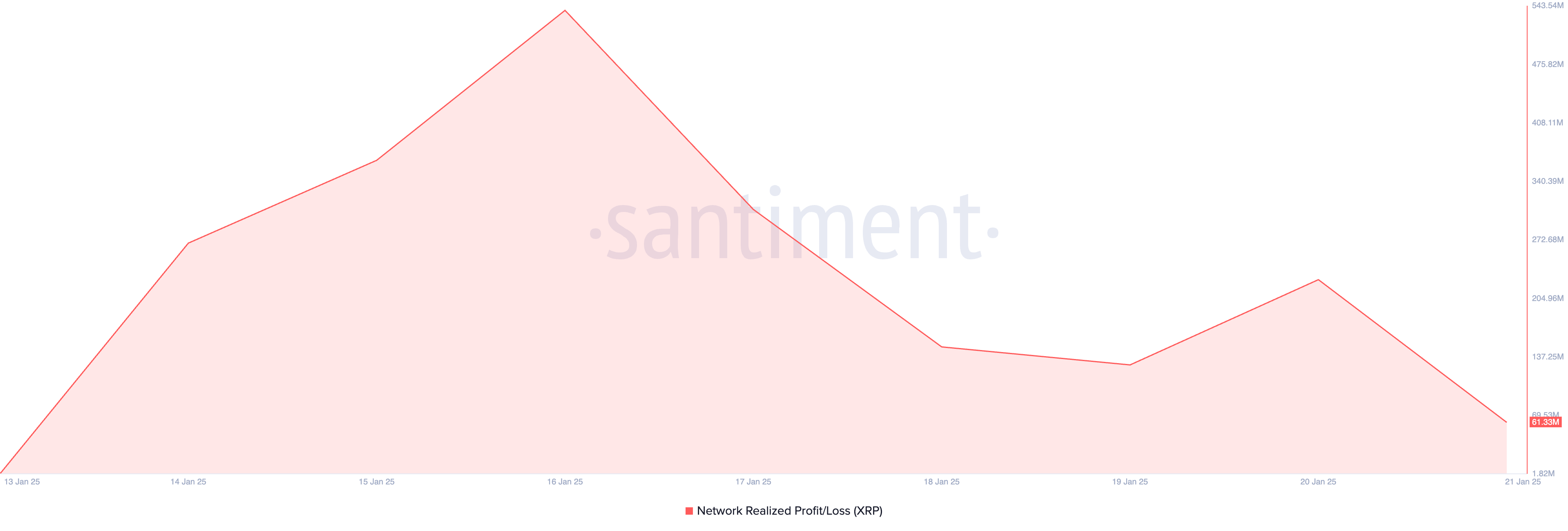ऑन-चेन रीडिंग्स से XRP के नेटवर्क रियलाइज्ड प्रॉफिट/लॉस (NPL) की पुष्टि होती है कि लाभ लेने की गतिविधि में वृद्धि हुई है। Santiment के अनुसार, यह मेट्रिक पिछले सप्ताह के दौरान लगातार सकारात्मक मूल्य लौटाता रहा है, जो दर्शाता है कि XRP धारक अपने टोकन को लाभ के लिए बेच रहे हैं।