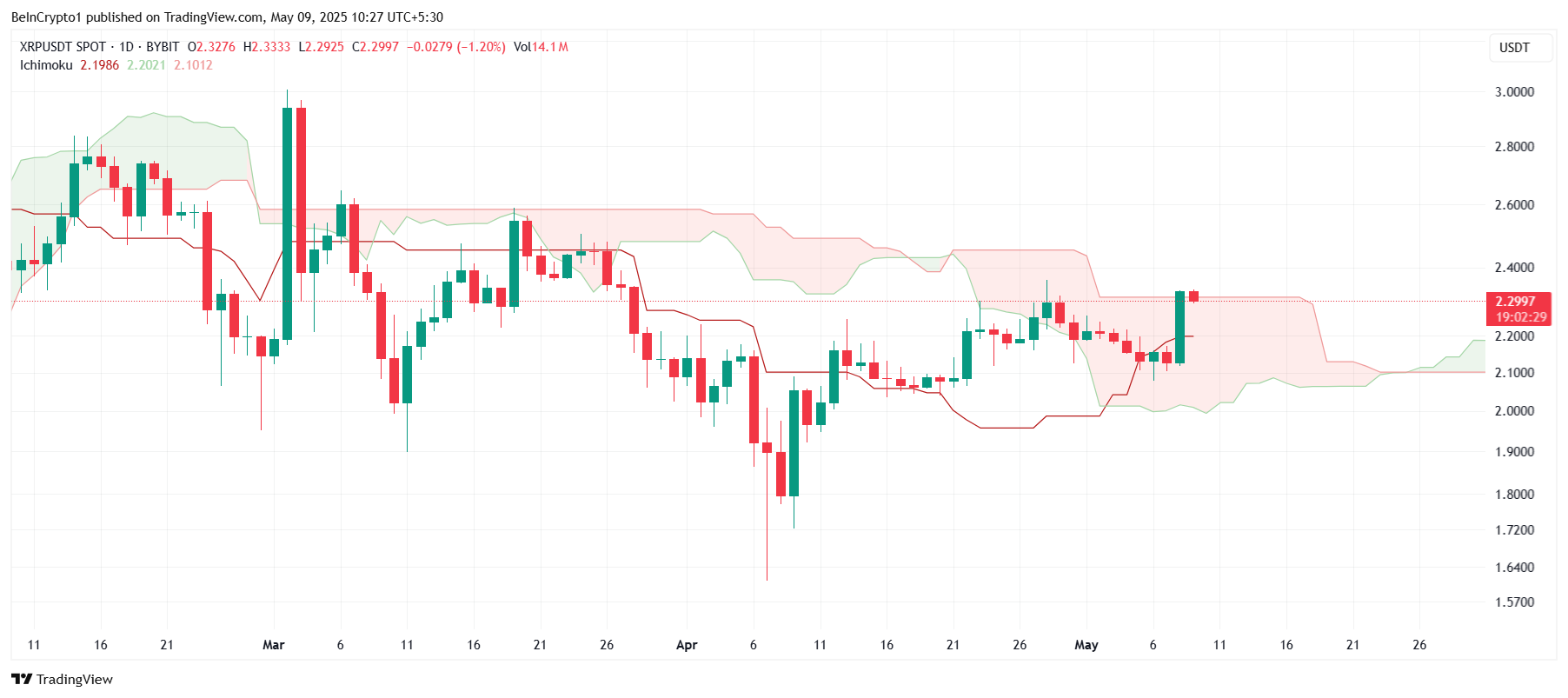 यदि कैंडलस्टिक्स सफलतापूर्वक Ichimoku Cloud के ऊपर ब्रेक करते हैं, तो यह बाजार की भावना में बदलाव को चिह्नित करेगा। अपवर्ड मूवमेंट की परिणामी पुष्टि XRP को उच्च प्रतिरोध स्तरों को चुनौती देने के लिए एक आधार प्रदान कर सकती है।