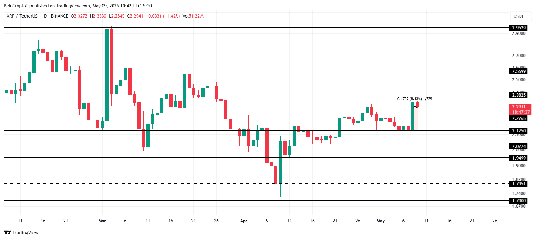 यदि XRP $2.38 को पार करने और इसे सपोर्ट में बदलने में सफल होता है, तो यह एक अधिक स्थायी रैली को ट्रिगर कर सकता है। इस स्तर को पार करने से $2.56 तक की वृद्धि का द्वार खुल सकता है, जिससे वर्तमान bearish-neutral दृष्टिकोण अमान्य हो जाएगा। ऐसा ब्रेकआउट बाजार में विश्वास का संकेत देगा और लॉन्ग-टर्म में आगे की बढ़त का मार्ग प्रशस्त कर सकता है।