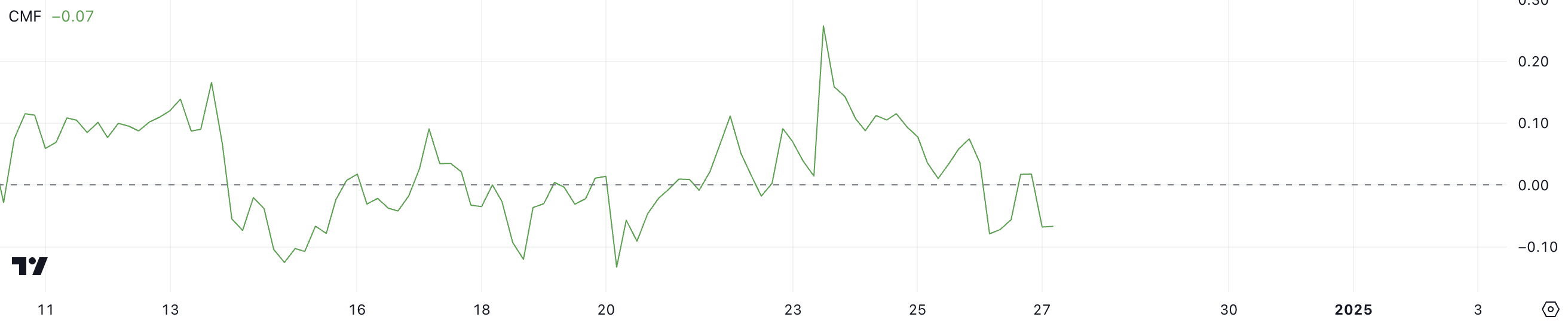 CMF में बदलाव पिछले कुछ दिनों में मार्केट में खरीद और बिक्री के दबाव के बदलते स्तरों को उजागर करता है।