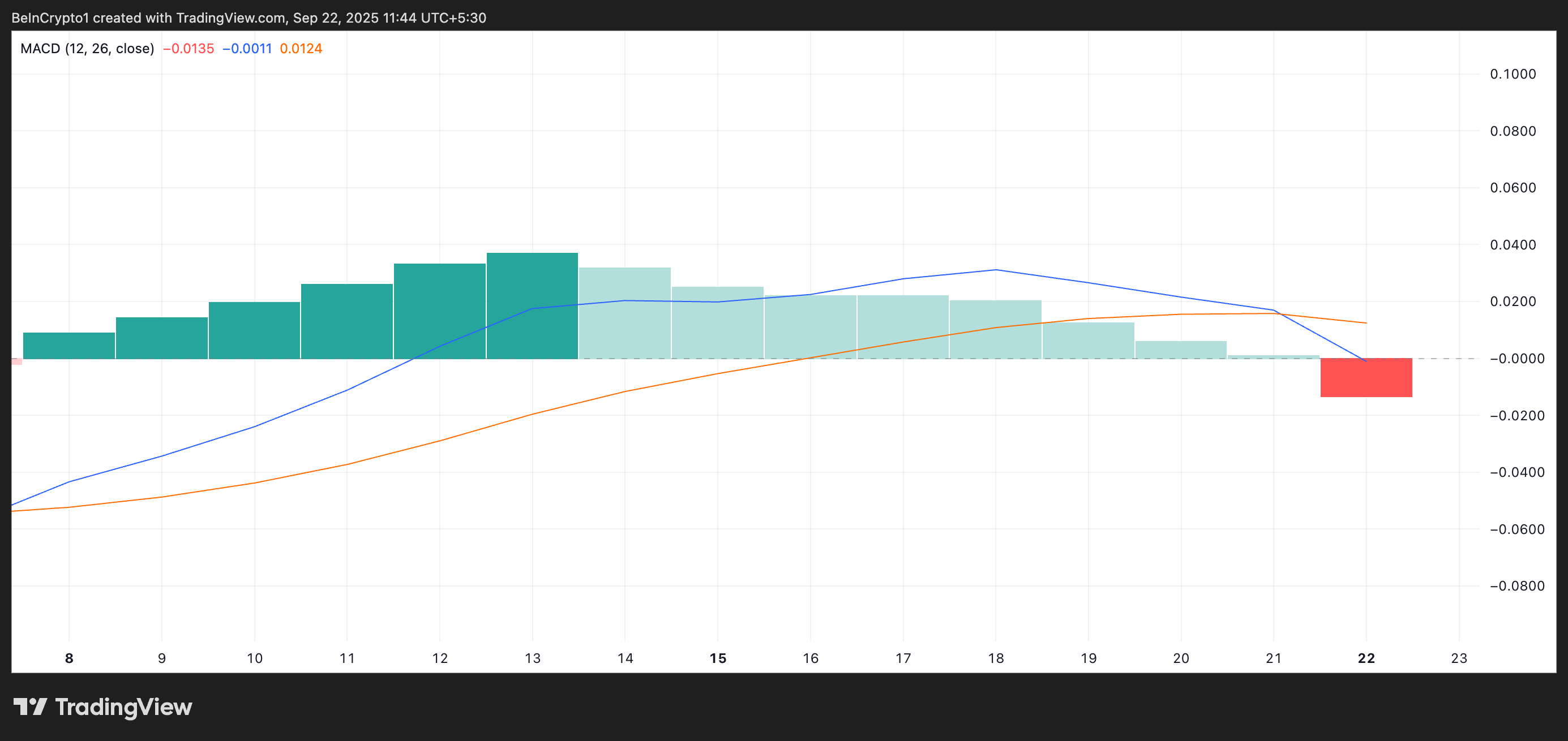 XRP के लिए, यह पहली बार है जब MACD ने 8 सितंबर के बाद से यह आकार लिया है, जो मार्केट सेंटिमेंट में बुलिश से बियरिश की ओर बदलाव को उजागर करता है।