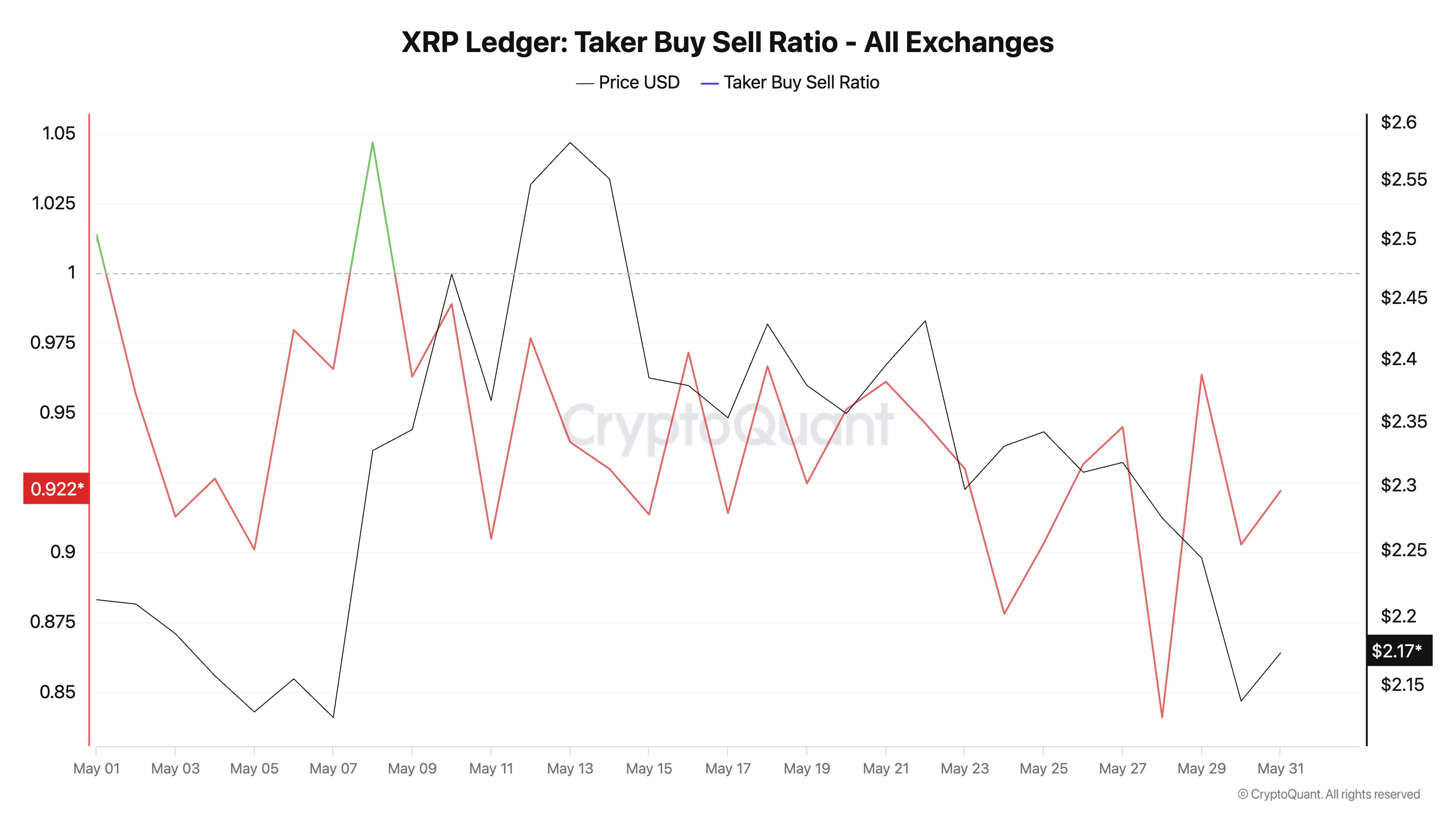 यह इंगित करता है कि XRP फ्यूचर्स मार्केट में सेल ऑर्डर्स बाय ऑर्डर्स पर हावी हैं। प्रेस समय में, यह CryptoQuant के अनुसार 0.92 पर खड़ा है।