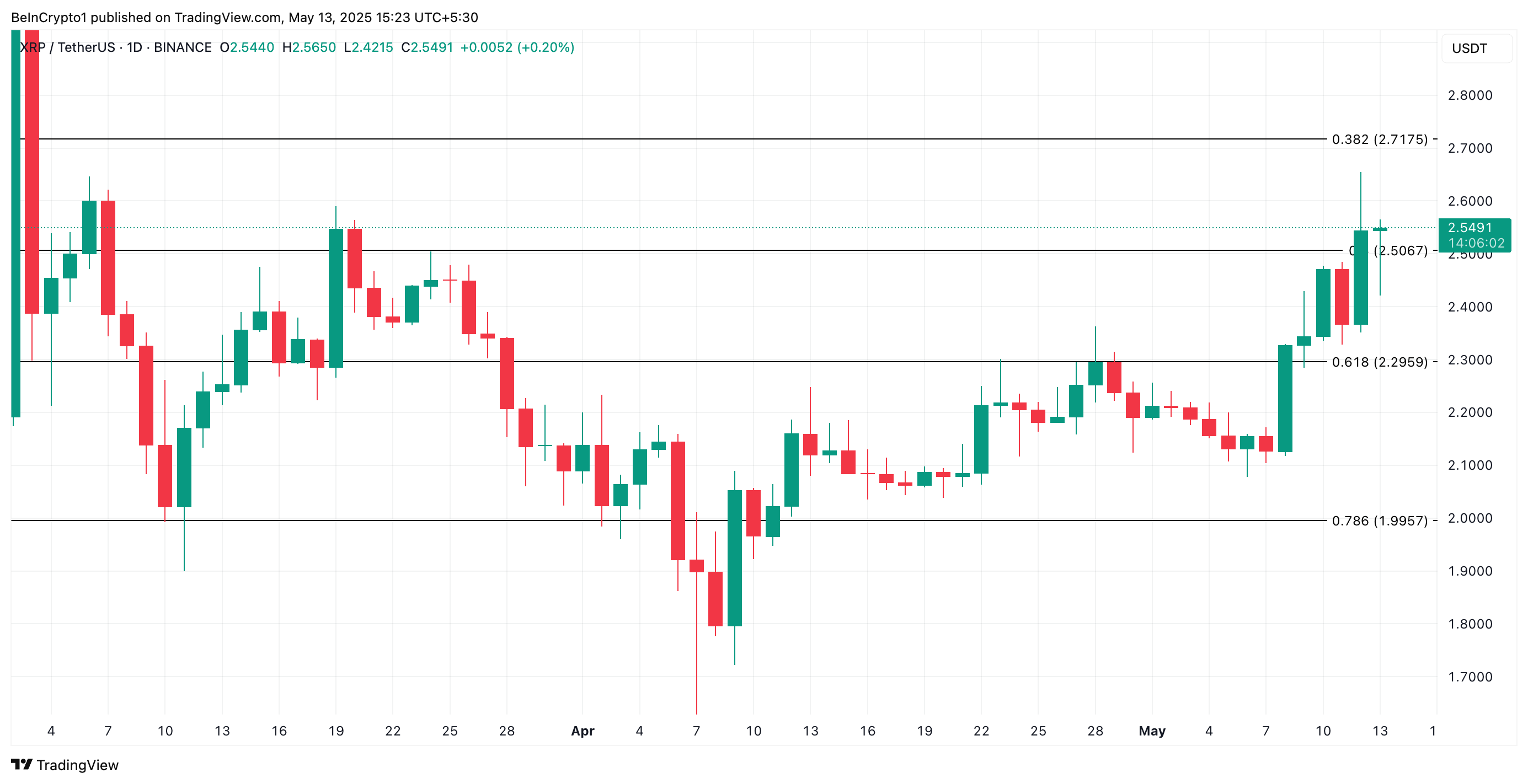 XRP ने मुख्य सपोर्ट से उछाल मारी, मार्च के $2.71 के हाई को लक्ष्य बनाया
