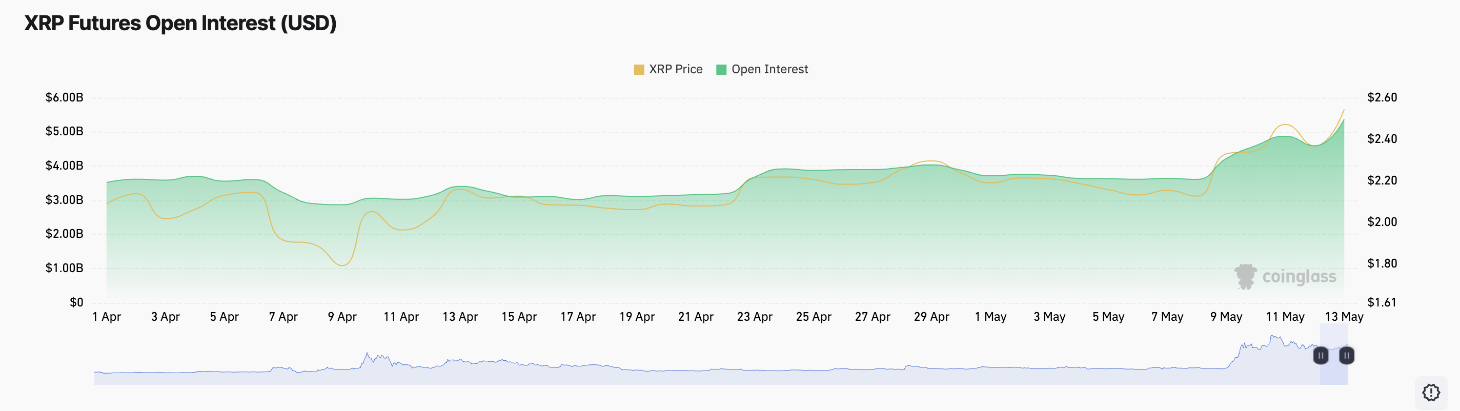 XRP के ओपन इंटरेस्ट में वृद्धि निवेशकों की बढ़ती भागीदारी और पिछले दिन के दौरान एसेट के चारों ओर बढ़ती बुलिश भावना को दर्शाती है।